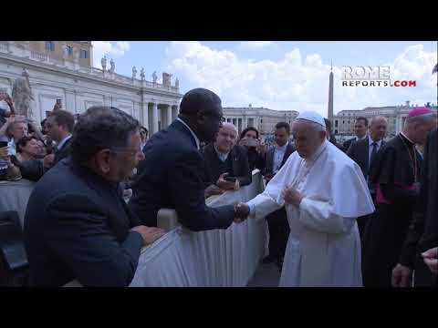 Pope greets Denis Mukwege, Congolese gynaecologist and Nobel Peace Prize...